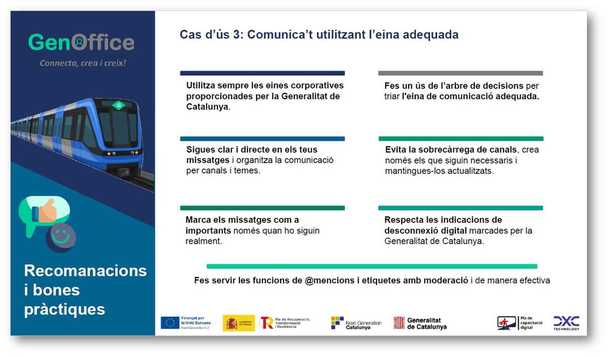 L'Escola d’Administració Pública de Catalunya posa a disposició recursos formatius del projecte GenOffice per promoure l’aprenentatge autònom i reforçar les competències digitals dels treballadors públics. Aquests recursos no compten amb suport ni certificació.