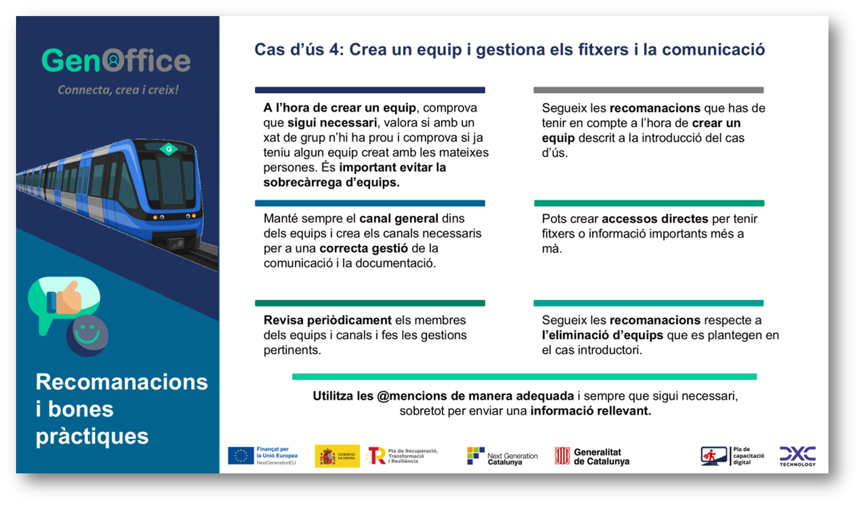 L'Escola d’Administració Pública de Catalunya posa a disposició recursos formatius del projecte GenOffice per promoure l’aprenentatge autònom i reforçar les competències digitals dels treballadors públics. Aquests recursos no compten amb suport ni certificació.