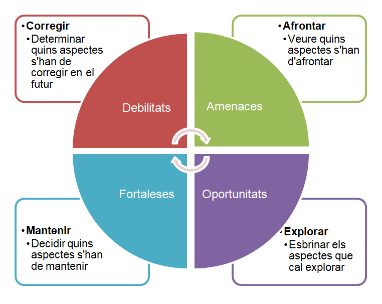 - Quadrant Debilitats: són els aspectes a corregir en el futur.